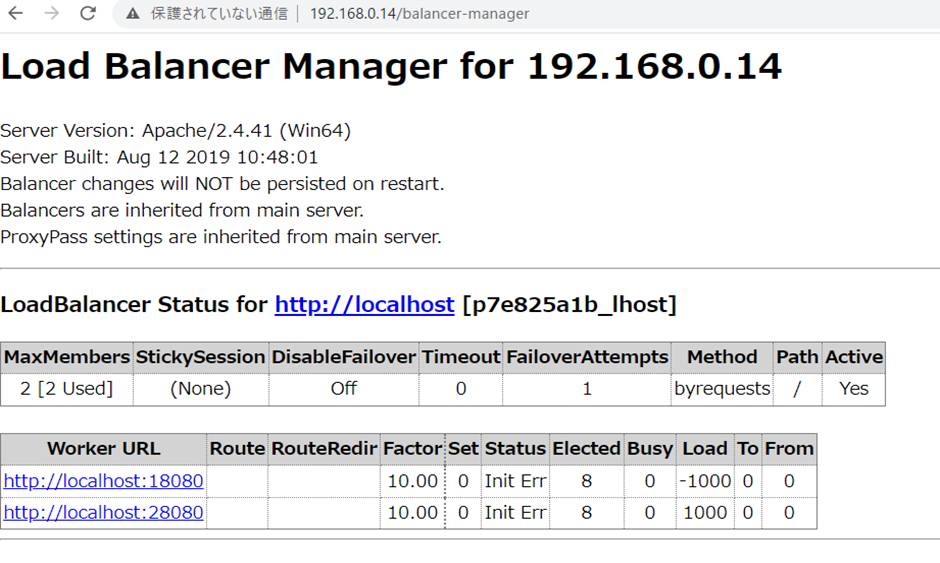 BalancerMember http://localhost:28080 keepalive=On loadfactor=10 retry=2