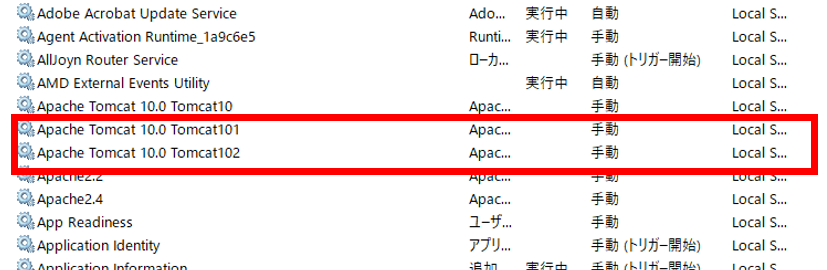 ・Tomcatを2つインストールする。(2つのインスタンスにしてインストール)